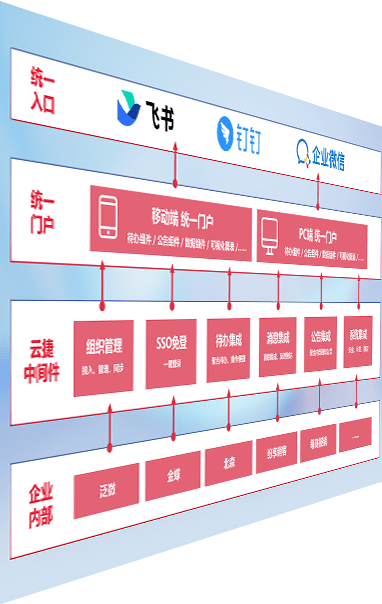 对协作平台提供支持服务,,支持企业应用与协作平台对接,,,包含组织同步、、消息集成、、、待办集成等。。。支持目前主流的协作平台:钉钉、、、、企微和飞书。。